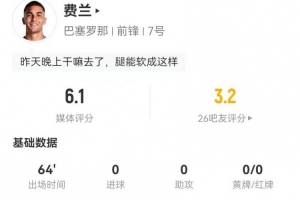 體育資訊1月4日訊 巴薩在本輪西甲對(duì)陣西班牙人,費(fèi)蘭本場數(shù)據(jù)如下: