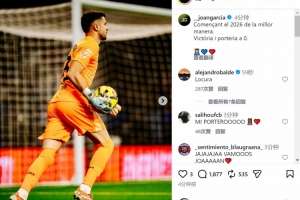霍安·加西亞社媒曬出比賽照片,慶祝球隊取勝,他寫道:“以最好的方式開啟2026年,勝利+零封?!?/p>