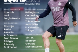 體育資訊1月4日訊 北京時(shí)間1月4日23:15,西甲第18輪,皇馬對(duì)陣貝蒂斯,皇馬公布本場(chǎng)名單,卡瓦哈爾回歸,姆巴佩傷缺,馬斯坦托諾在列。