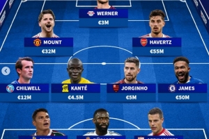 前腰:芒特(曼聯(lián),3200萬(wàn))、 哈弗茨(阿森納,5500萬(wàn))