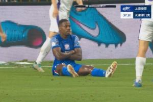 體育資訊06月25日訊 中超第15輪,上海申花vs天津津門虎,比賽第37分鐘,馬納法禁區(qū)內(nèi)突破后倒地,裁判沒有表示,隨后馬納法雙手交叉在地上久坐不起表示抗議,VAR介入示意沒有點(diǎn)球。