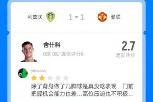 近期舍什科已經(jīng)遭遇了9場進球荒,本賽季他加盟曼聯(lián)后17場比賽僅打入兩球,他的表現(xiàn)也遭到了球迷的口誅筆伐,本場比賽吧友給舍什科打出了2.7的超低分。