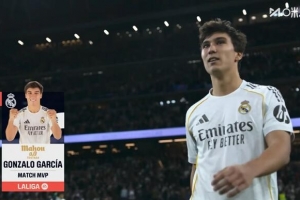 本場(chǎng)比賽貢薩洛上演帽子戲法,賽后他也當(dāng)選西甲官方評(píng)選出的本場(chǎng)最佳球員。