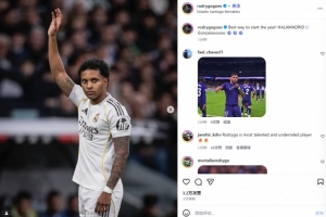 他也在賽后通過社媒曬出自己的比賽照,并配文:“開啟新一年的最佳方式, 馬德里前進?。ü玻┴曀_洛戴帽??????”