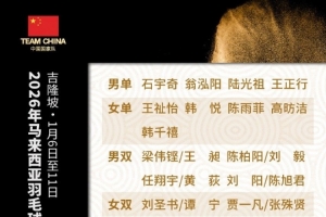 體育資訊1月5日訊 2026年馬來西亞羽毛球公開賽將于1月6日至11日在吉隆坡舉行,今日中國羽毛球隊公布參賽名單。石宇奇、陳雨菲、鳳凰組合領(lǐng)銜。