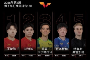 體育資訊1月5日訊 國際乒聯(lián)官方公布2026年第二周世界排名,王楚欽和孫穎莎繼續(xù)領跑男女單打。