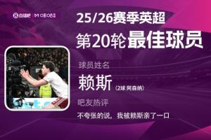 2025-2026賽季英超火熱進(jìn)行中,體育資訊和咪咕體育聯(lián)合發(fā)起每輪英超最佳球員評(píng)選活動(dòng)!第20輪評(píng)選結(jié)果已經(jīng)出爐,賴斯雙響幫助阿森納3-2力克伯恩茅斯、6分領(lǐng)跑,當(dāng)選本輪英超最佳!