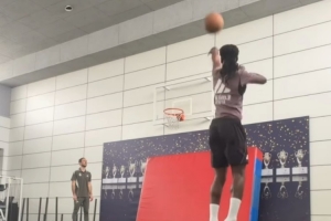 卡馬文加秀籃球技術(shù),連續(xù)4次遠(yuǎn)投命中,彈無(wú)虛發(fā),他在社交媒體上曬出視頻,配文:“我來(lái)了啊哈哈!”