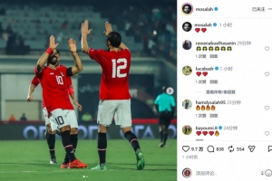 此役薩拉赫為埃及踢滿120分鐘,并攻入鎖定勝局的第三球,幫助球隊取勝,薩拉赫社媒曬出慶祝進球的照片,并配上紅心表情符號。
