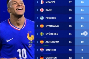 1.姆巴佩(皇馬) 67場 16個點球