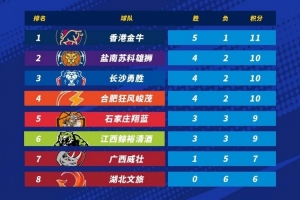 長沙勇勝在與鹽南蘇科雄師的獅王爭霸中落敗,目前與鹽南同為4勝2負(fù)積10分、同樣積分的還有合肥狂風(fēng)峻茂。廣西威壯戰(zhàn)勝湖北文旅贏得賽季首勝,目前在積分榜上領(lǐng)先湖北1分。