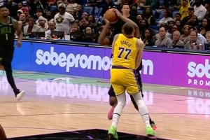 GIF-奎因反擊撞倒東契奇,裁判吹2+1,湖人挑戰(zhàn)成功改判進(jìn)攻犯規(guī)