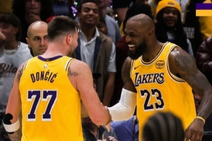 本場(chǎng)比賽詹姆斯砍下30分8籃板8助攻2搶斷1蓋帽,東契奇砍下30分10助攻2搶斷。