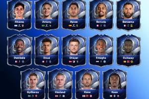 阿爾瓦雷斯、安東尼、阿約塞·佩雷斯、巴爾科拉、本澤馬、登貝萊、杜埃、安德斯·德雷爾、恩梅加、吉拉西、約克雷斯、哈蘭德、凱恩、基恩、克瓦拉茨赫利亞、萊萬、盧卡庫(kù)、勞塔羅、馬特塔、姆巴佩、姆伯莫、梅西、普利西奇、C羅、希克、孫興慜、維尼修斯