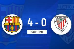 巴薩4球領(lǐng)先!拉菲尼亞和巴德吉均獻傳射!第38分鐘,巴德吉精準長傳轉(zhuǎn)移,拉菲尼亞小角度爆射上角得分,巴塞羅那4-0畢爾巴鄂!↓