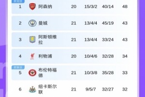 體育資訊1月8日訊 英超第21輪結(jié)束多場(chǎng)對(duì)陣,最新積分榜情況如上圖。