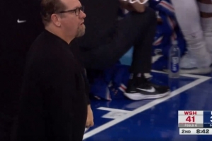 無情鐵肘!戈貝爾單打阿倫將后者肘出界外被吹進(jìn)攻犯規(guī)
