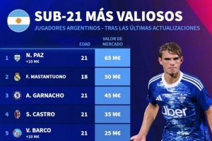 體育資訊1月8日訊 德國(guó)轉(zhuǎn)會(huì)市場(chǎng)統(tǒng)計(jì)了阿根廷U21球員的身價(jià),并列出榜單,尼科·帕斯6500萬(wàn)歐居首,馬斯坦托諾5000萬(wàn)歐次席。