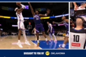 GIF-亞歷山大撤步跳投倒地吹罰森薩博犯規(guī),爵士挑戰(zhàn)失敗