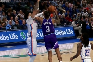 GIF-基昂特·喬治突破飛身放籃打成2+1 雷霆挑戰(zhàn)成功改判進攻犯規(guī)