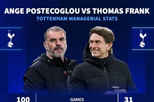 澳波、弗蘭克執(zhí)教熱刺數(shù)據(jù):