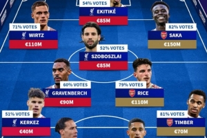 德轉球迷票選阿森納+利物浦合體最佳陣(身價及得票率):歐元