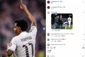 羅德里戈最近6場比賽貢獻3球3助攻,他也在賽后通過社媒曬出自己進球后的慶祝照,并配文:“決賽!”