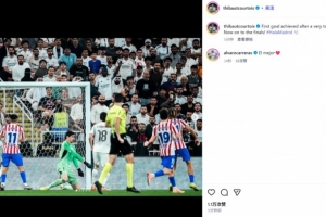 庫爾圖瓦本場共計完成5次撲救,他也曬出自己的比賽照,并配文:“經(jīng)過一場苦戰(zhàn)達成首個目標(biāo),現(xiàn)在展望決賽!”