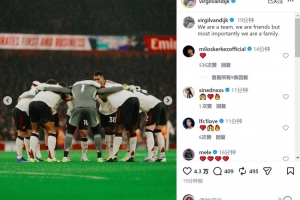 利物浦隊長范戴克社媒曬出比賽照片,配文:“我們是團隊,是朋友,但最重要的是,我們是一家人。”