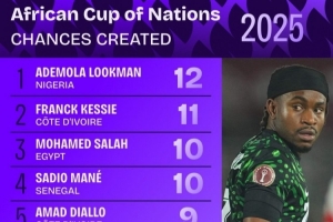 體育資訊1月9日訊 非洲杯激戰(zhàn)正酣,數(shù)據(jù)機(jī)構(gòu)squawka也統(tǒng)計(jì)了本屆非洲杯創(chuàng)造機(jī)會情況,盧克曼力壓群雄居首。