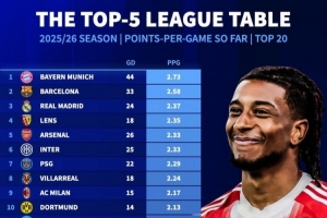 體育資訊1月9日訊 《轉(zhuǎn)會市場》統(tǒng)計了本賽季五大聯(lián)賽球隊場均拿分情況,拜仁、巴薩、皇馬分列前三。
