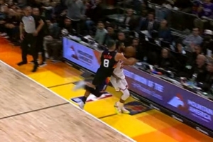 GIF-伊戈達(dá)羅將球捅到布里奇斯身上出界,尼克斯挑戰(zhàn)失敗,太陽球權(quán)