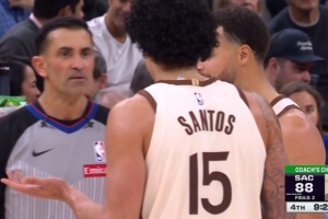 桑托斯籃板卡位時被吹犯規(guī) 勇士挑戰(zhàn)成功&威少犯規(guī) 桑托斯被補吹T
