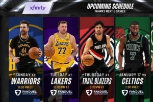 老鷹今天大勝掘金,轉播方給出球隊接下來5場賽程,對手分別是勇士、湖人、開拓者、凱爾特人和雄鹿。