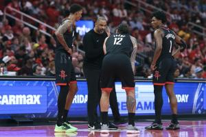 小賈巴里·史密斯狀態(tài)奇差,整個第四節(jié)8投0中!饒是如此,火箭主教練烏度卡末節(jié)還是給了小賈巴里·史密斯10分鐘的出場時間(注:伊森傷退)。