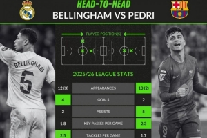 體育資訊1月12日訊 皇馬和巴薩將在本輪西超杯決賽相逢,whoscored也對比了兩隊中場核心的西甲關(guān)鍵數(shù)據(jù)。