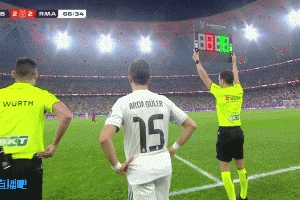 體育資訊01月12日訊 西班牙超級杯決賽,巴薩對陣皇馬,比賽第67分鐘,皇馬也做出換人調(diào)整,居萊爾換下巴爾韋德。