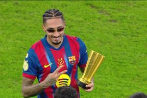 體育資訊1月12日訊 西超杯決賽,拉菲尼亞梅開二度,巴薩3-2擊敗皇馬,奪得冠軍,拉菲尼亞賽后接受了媒體的采訪。