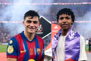體育資訊1月12日訊 西超杯決賽,佩德里助攻萊萬破門,巴薩3-2擊敗皇馬,捧起冠軍獎杯,賽后佩德里接受了媒體的采訪。
