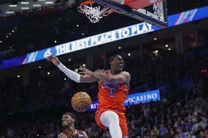 體育資訊1月12日訊 NBA常規(guī)賽,雷霆半場(chǎng)54-59落后熱火。