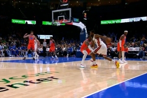 想啥呢?蘭德爾表情古怪 神情“著迷”地上下來回掃視文班全身!