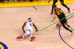 GIF-巴特勒倒地拼搶,庫里追身三分