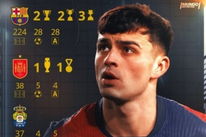 《世界體育報(bào)》列出了佩德里職業(yè)生涯至今的數(shù)據(jù),他總計(jì)出戰(zhàn)299場(chǎng)比賽,打進(jìn)37球,助攻37次,贏得8座冠軍獎(jiǎng)杯。