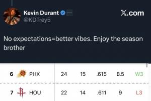 鏈接>>>網(wǎng)友:交易是太陽贏了 謝謝你KD?? 杜蘭特:沒有期待心態(tài)自然好