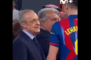 在頒獎環(huán)節(jié),攝像機(jī)也捕捉到了皇馬主席弗洛倫蒂諾和萊萬之間的互動?!妒荔w》指出,弗洛倫蒂諾在與萊萬多夫斯基握手時(shí),則流露出既欽佩又無奈的復(fù)雜神情。 皇馬主席面帶微笑地向這位波蘭球員打招呼,并含蓄地稱他為“混蛋”,以此來表彰這位37歲高齡卻打進(jìn)精彩進(jìn)球的波蘭球員的實(shí)力。萊萬多夫斯基聽到后也露出了笑容。