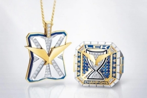 這款戒指采用采用新型材料 “藍(lán)色陶瓷” 打造,側(cè)面刻有隊(duì)徽,戒指內(nèi)側(cè)刻有決賽比分以及各位選手的名字。