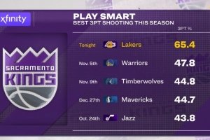 國王賽季三分命中率前五場次: