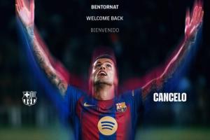 31歲的坎塞洛2024年夏窗以2500萬歐元價格從曼城加盟利雅得新月,此前他曾于2023年租借效力過巴薩一年。
