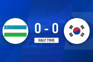 半場戰(zhàn)罷,韓國U23隊0-0烏茲別克斯坦U23隊。