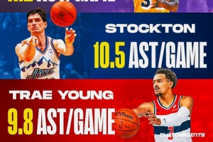 特雷·楊生涯場(chǎng)均助攻9.8次 排歷史第3!前2為魔術(shù)師&斯托克頓!